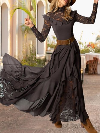Women's Boho Lace H-Line Natural Loose Maxi Skirt