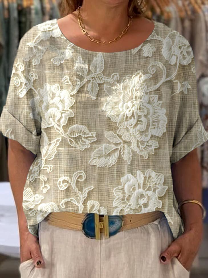 Casual Floral Crew Neck Short Sleeve T-shirt
