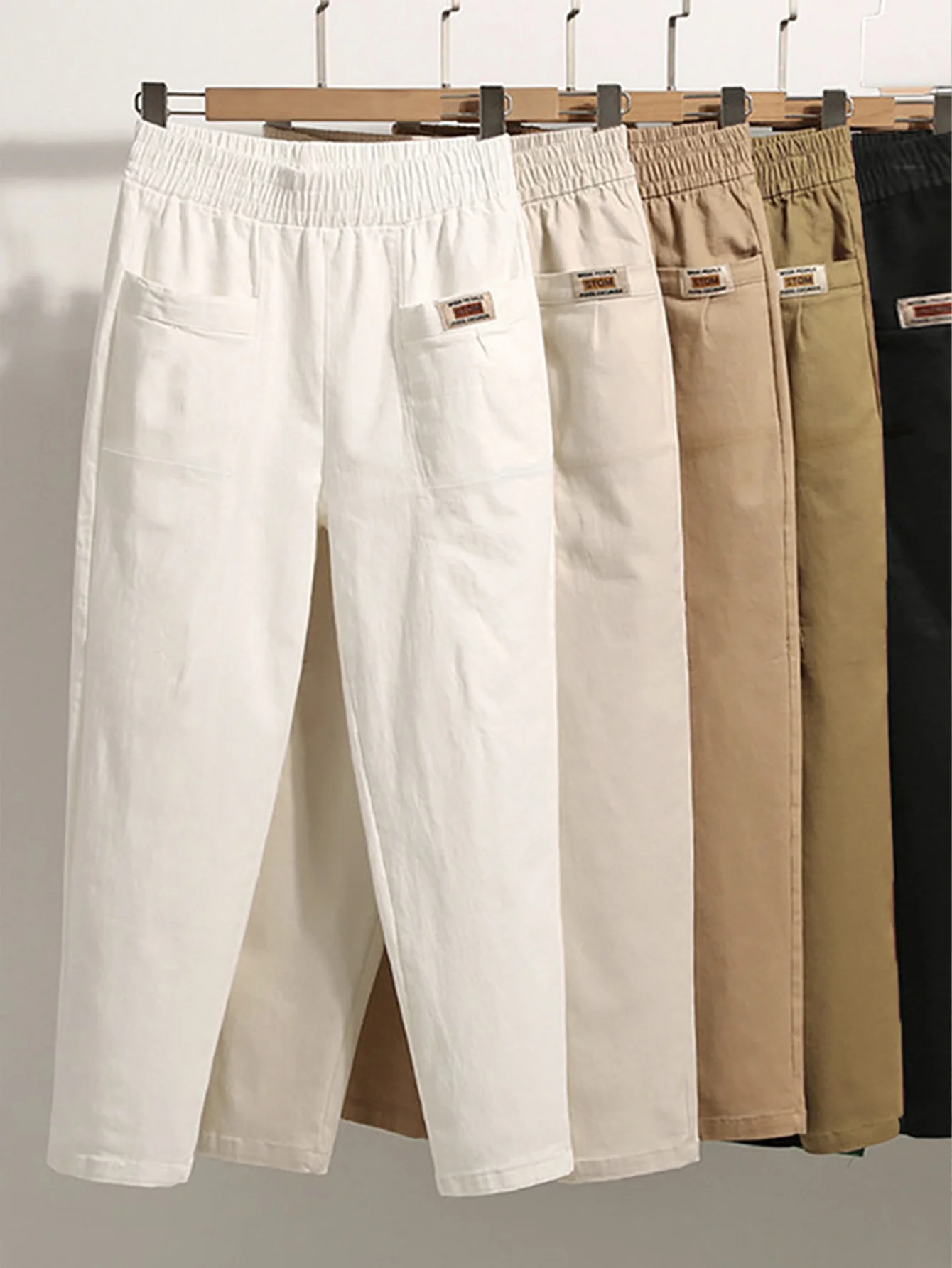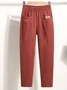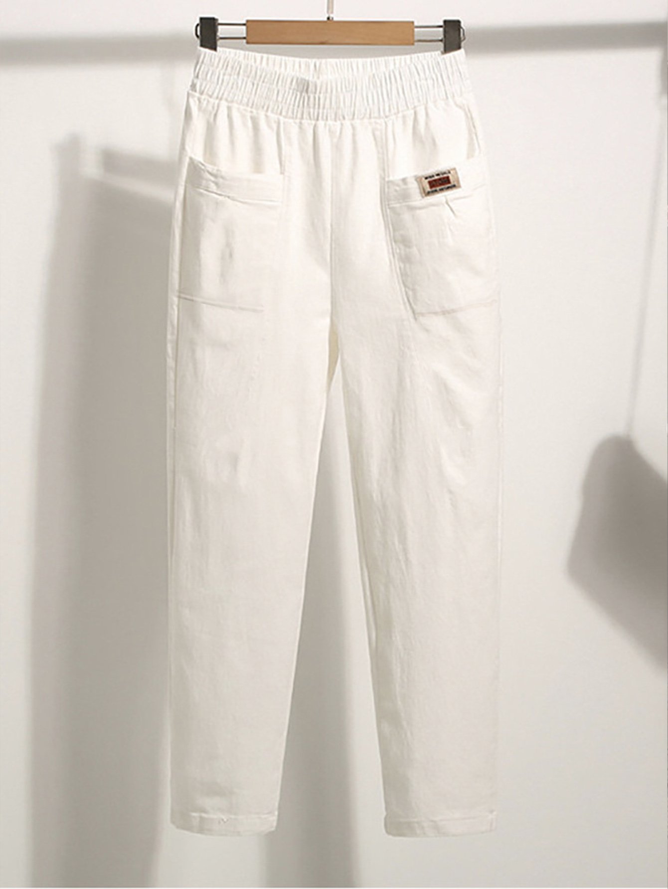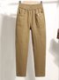 Casual Cotton Plain Long Elastic Waist Pocket Stitching Pants