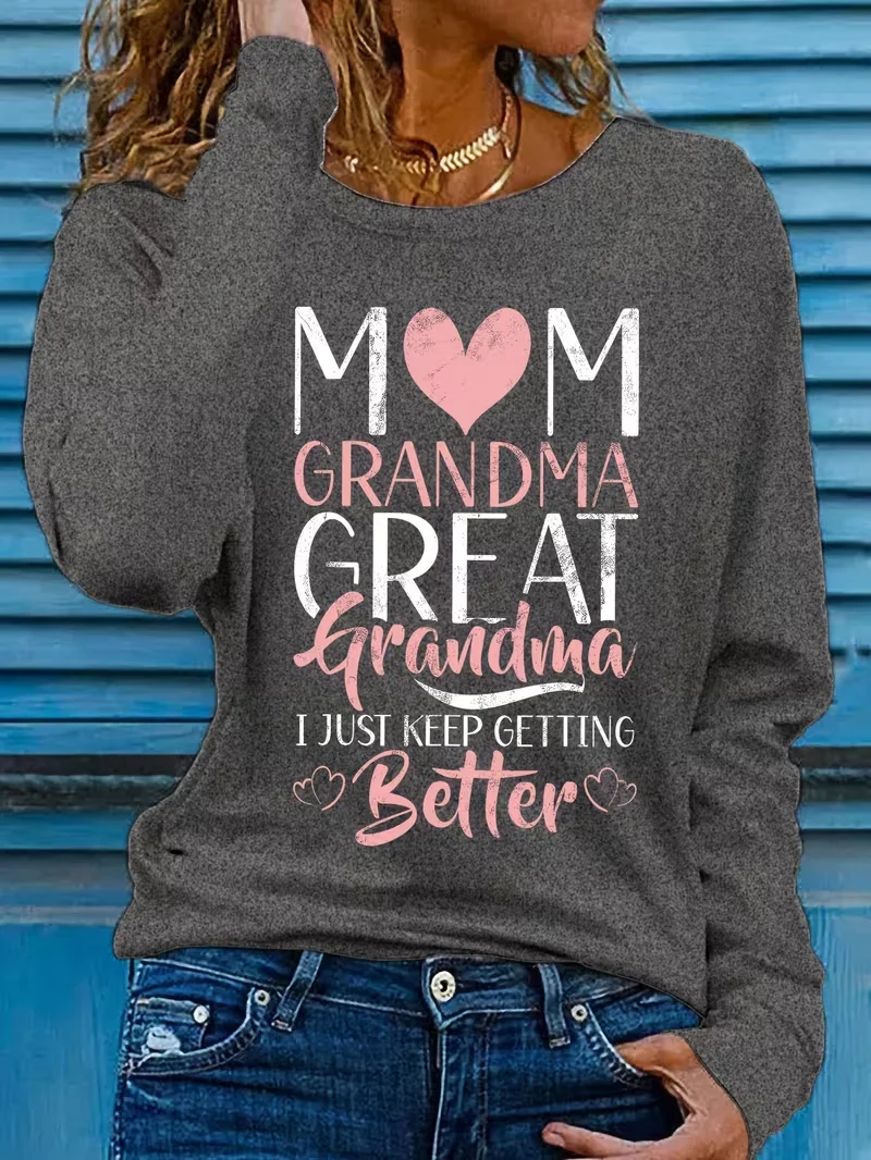 Casual Text Letters Crew Neck Long Sleeve T-shirt