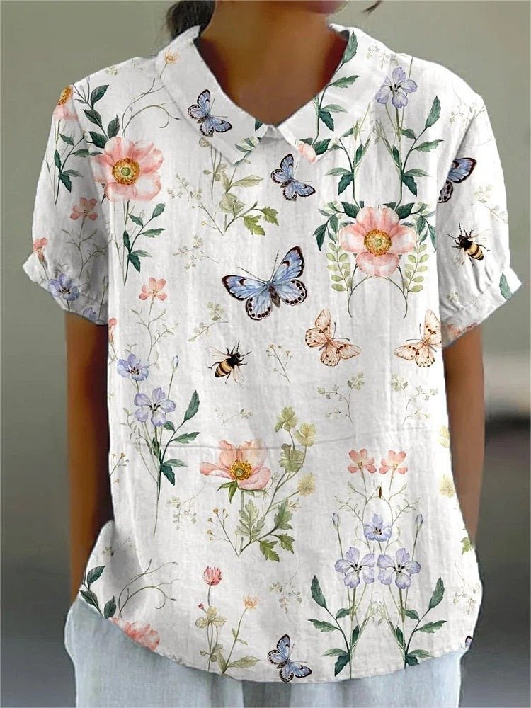 Shawl Collar Half Sleeve Striped Regular Loose Blouse For Women
