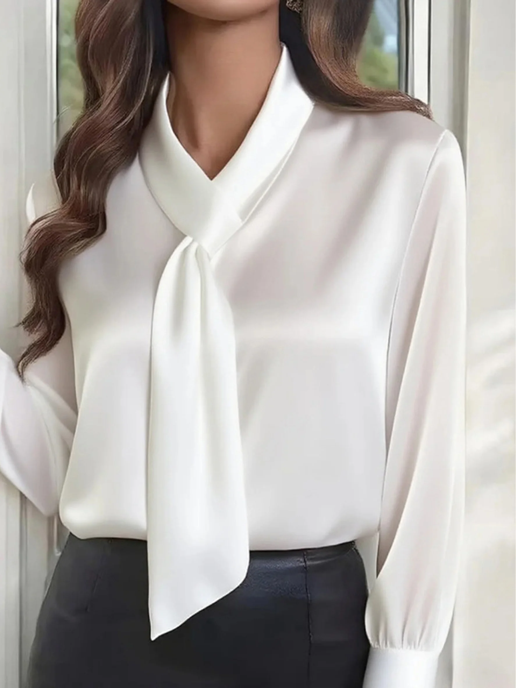V Neck Long Sleeve Plain Regular Micro-Elasticity Regular Fit Shirt For Women