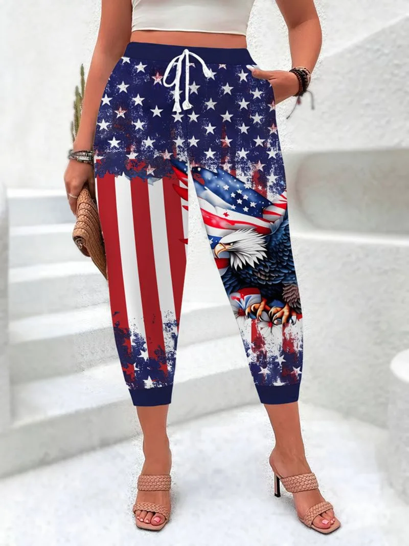 Women America Flag Capris Pants Casual Summer Trousers