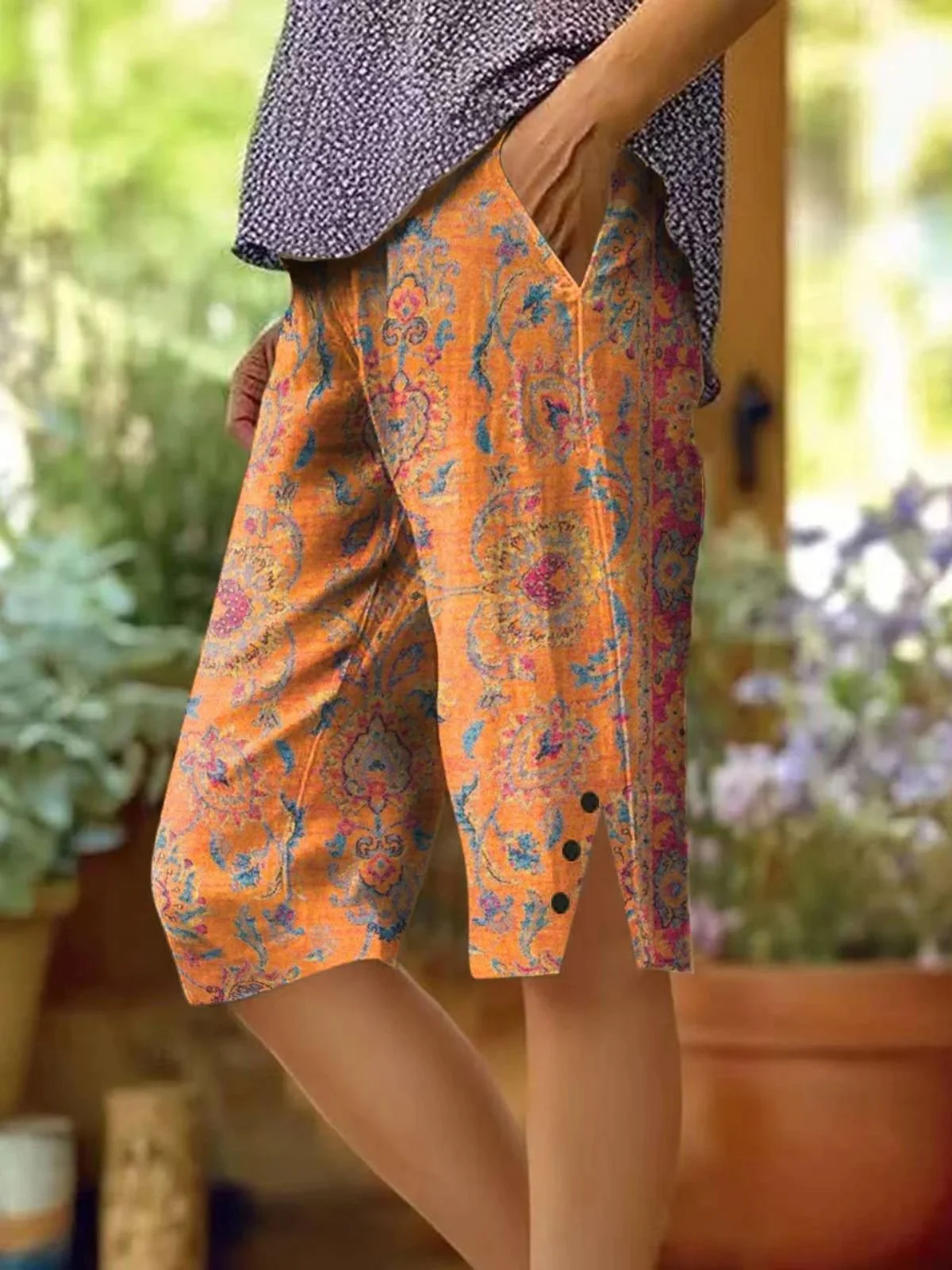 Women Floral Fifth Pants Pants Casual Summer Trousers