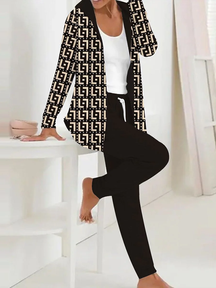 Women Geometric Hoodie Long Sleeve Comfy Casual Coat With Pants Two-Piece Set